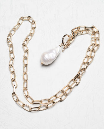 14K Gold-Filled Paperclip Necklace Baroque Pearl 63cm