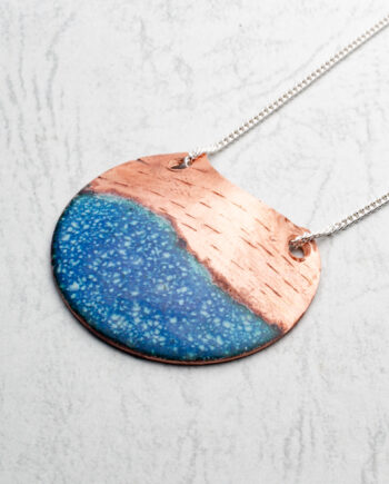 Blue Fired Enamel Domed Copper Pendant silver chain