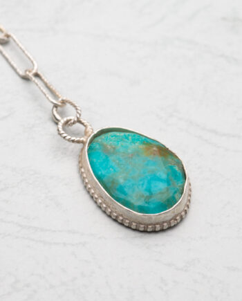 Sterling Silver Bezel Paperclip Chain Turquoise Pendant