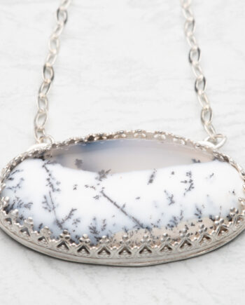 Blue Dendritic Opal Cabochon Pendant Sterling Silver Prongs and Chain
