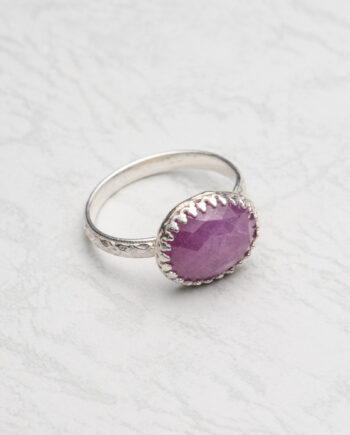 Sterling Silver Pink Sapphire Patterned Shank Ring – Size P