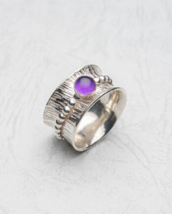 Sterling Silver Tanzanite Patterned Shank Ring – Size R