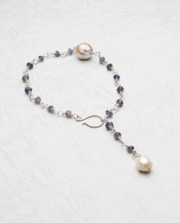 Sterling Silver Links Clasp Freshwater Pearl Iolite Bracelet