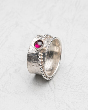 Sterling Silver Pink Sapphire Patterned Shank Ring – Size Q