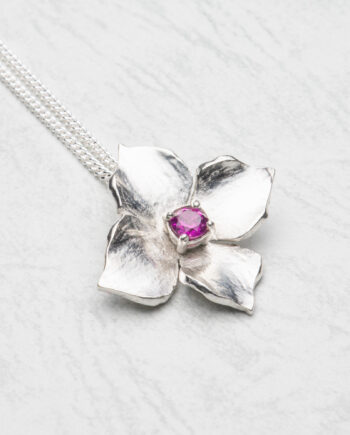 Sterling Silver Hydrangea Garnet Pendant with Chain