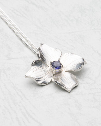 Sterling Silver Tanzanite Pendant Fine Silver Flowers with Chain