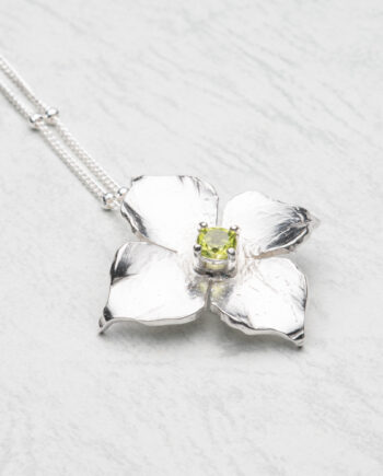 Sterling Silver Hydrangea Peridot Pendant with Chain