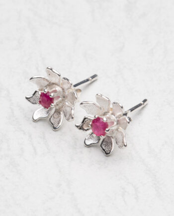Sterling Silver Red Sapphire Flower Stud Earrings