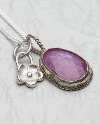 Sterling Silver Pink Sapphire Pendant Charm Chain