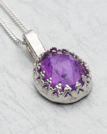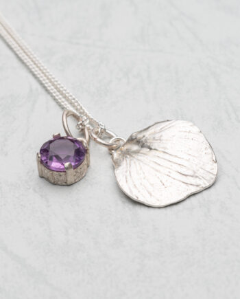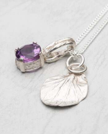 Pure Silver Hydrangea Petal Amethyst Charm Sterling Silver Chain