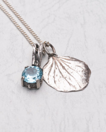 Fine (999) Silver Hydrangea Petal Sky Blue Topaz with Chain
