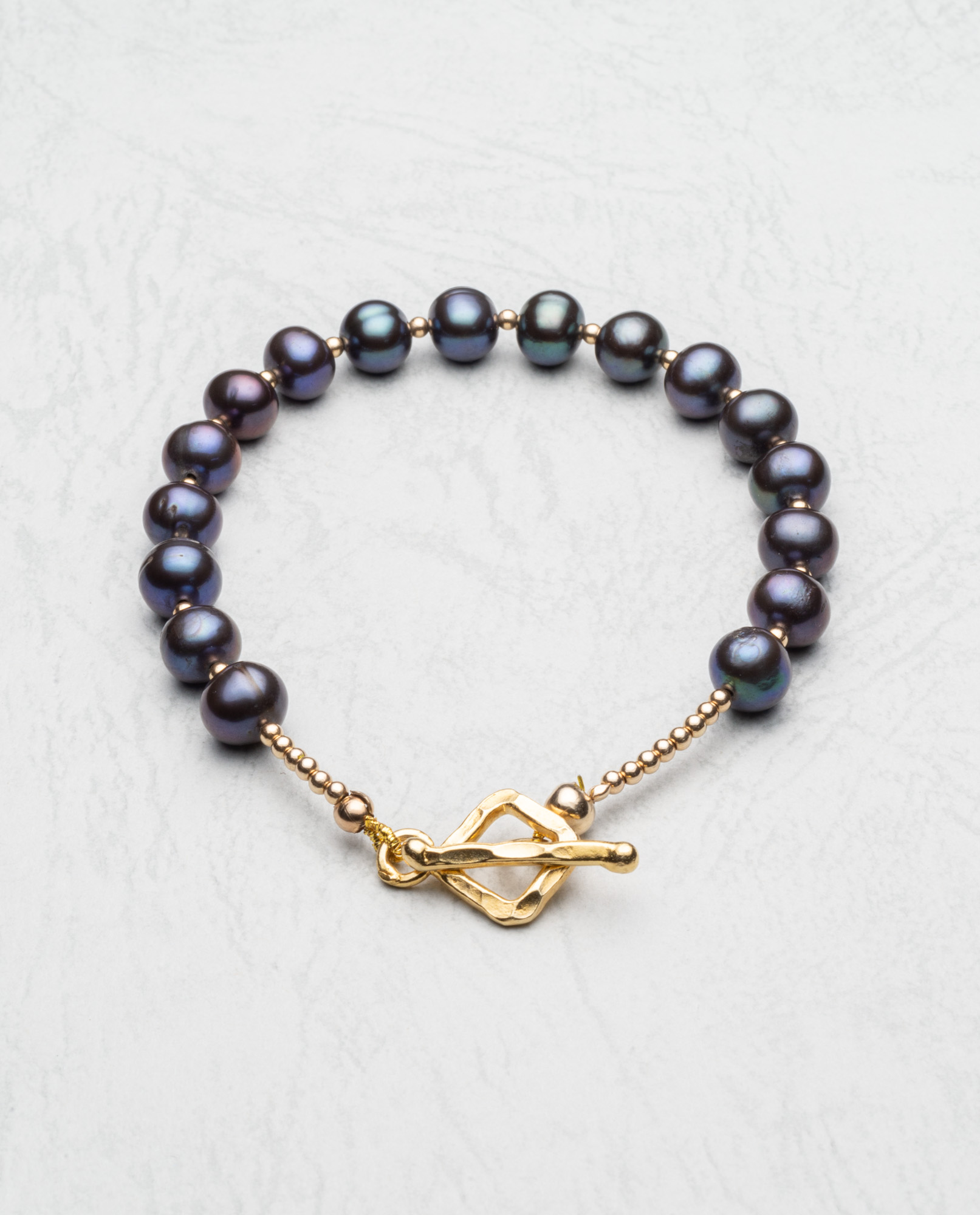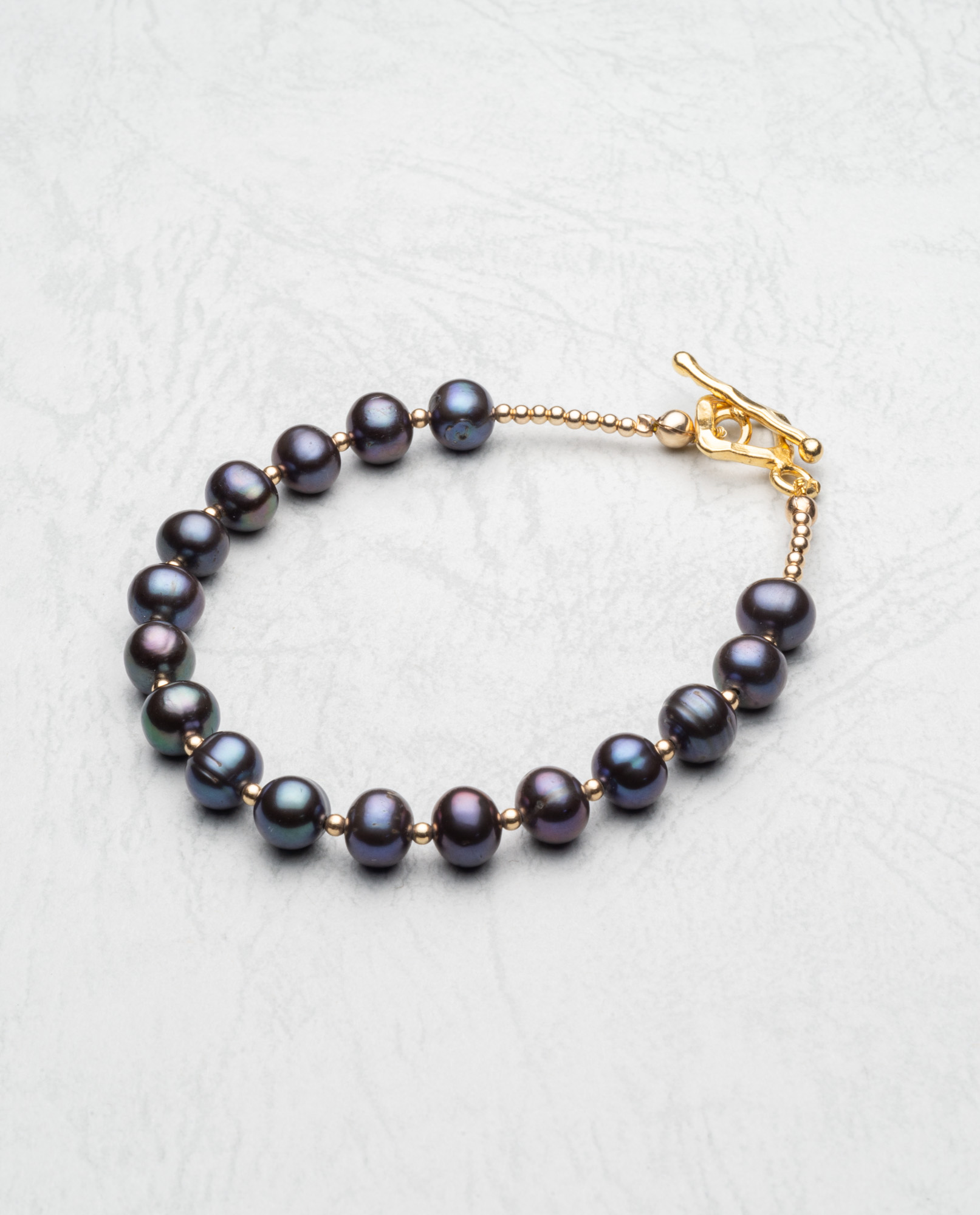 Black freshwater pearl bracelet with 14ct gold filled clasp. 19 cm long.