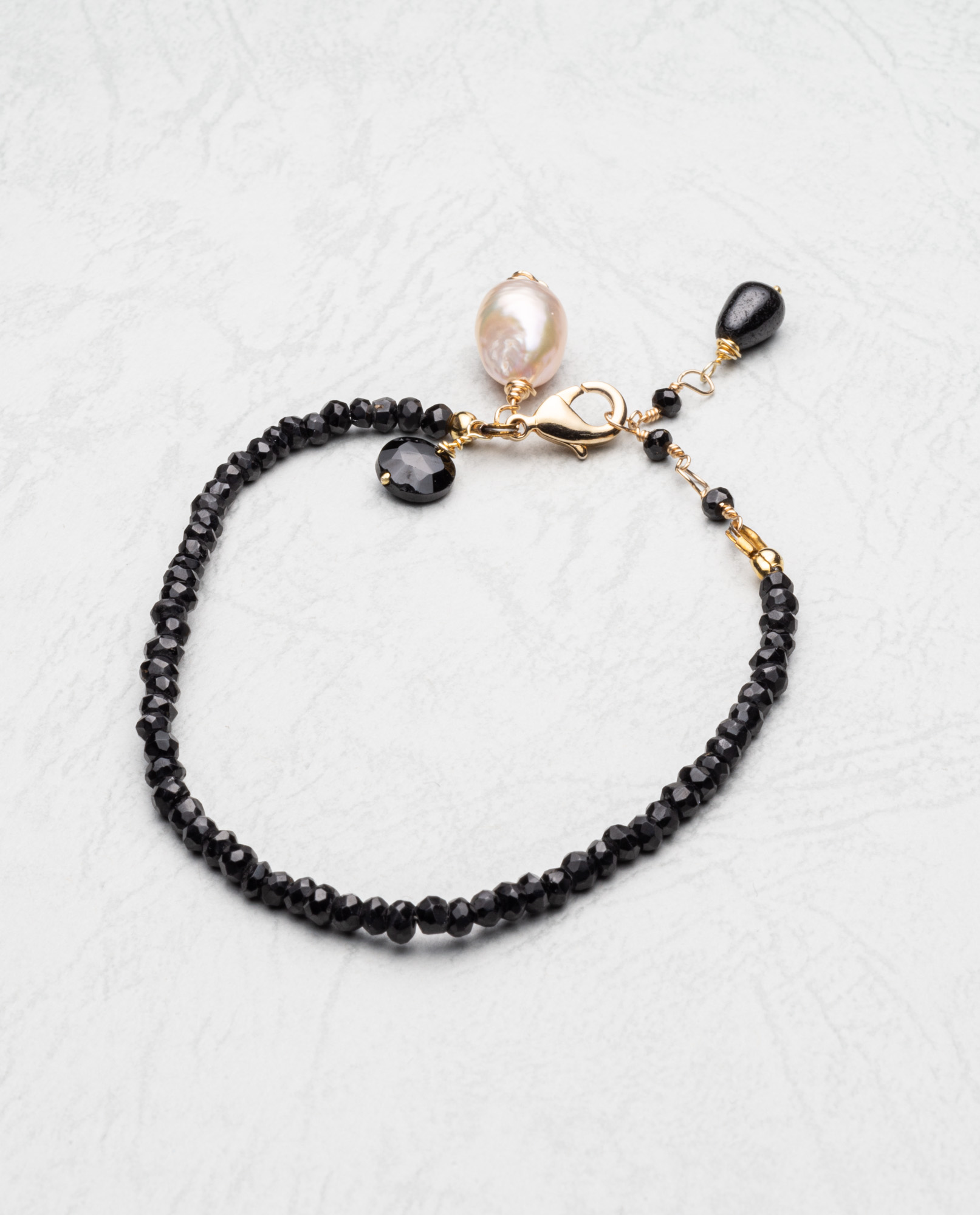 14K Gold-filled Clasp Black Spinel Bracelet with Pearl