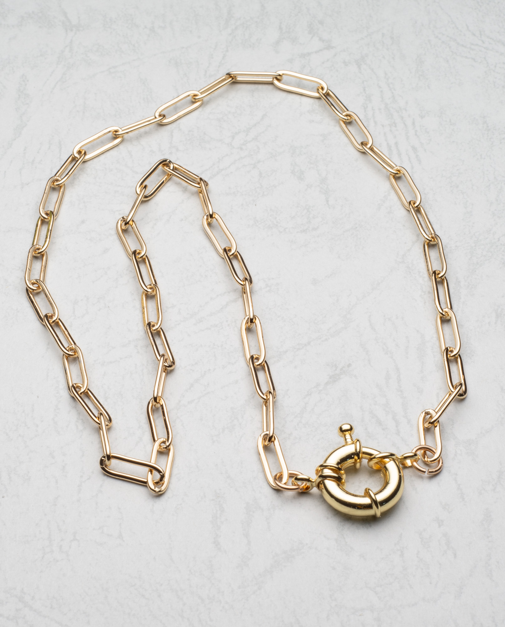 14k gold-filled paperclip chain 18″(45cm) long with a wheel clasp