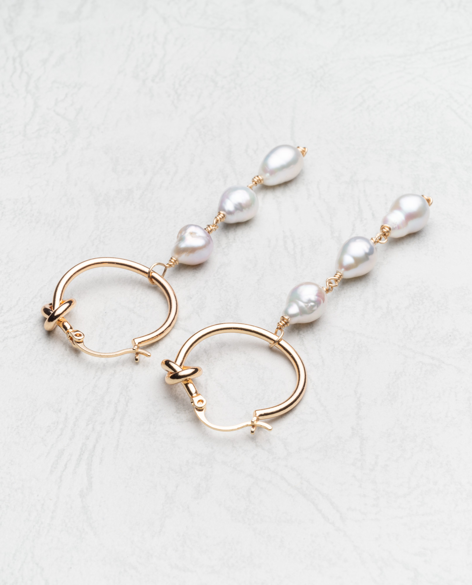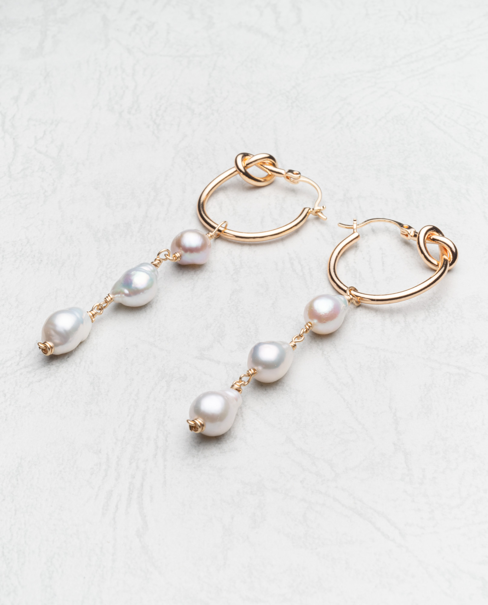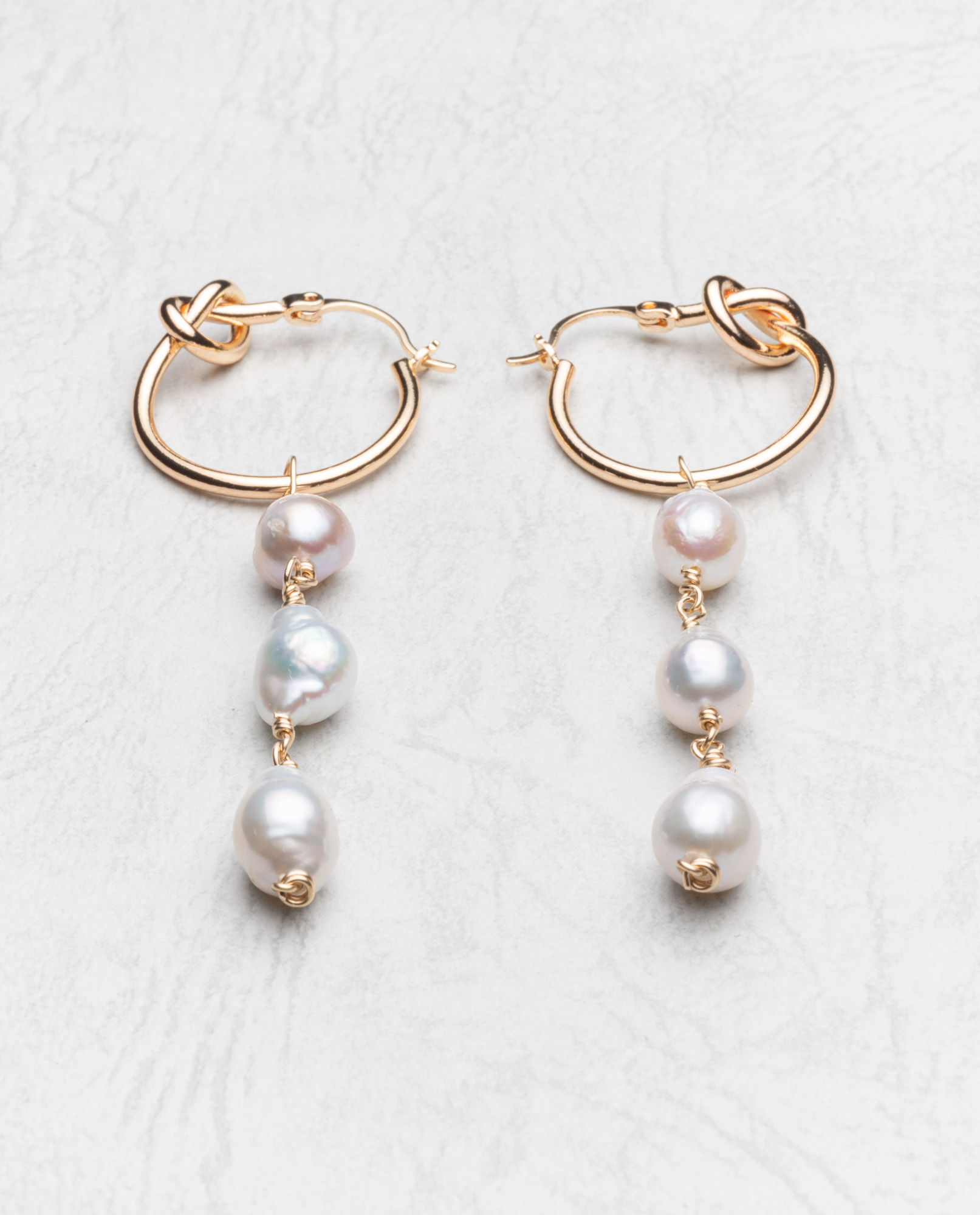 14ct gold-filled hoopwith knot 3x Akoya pearl earrings 19 mm diameter