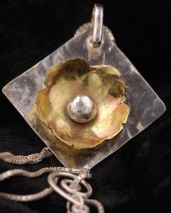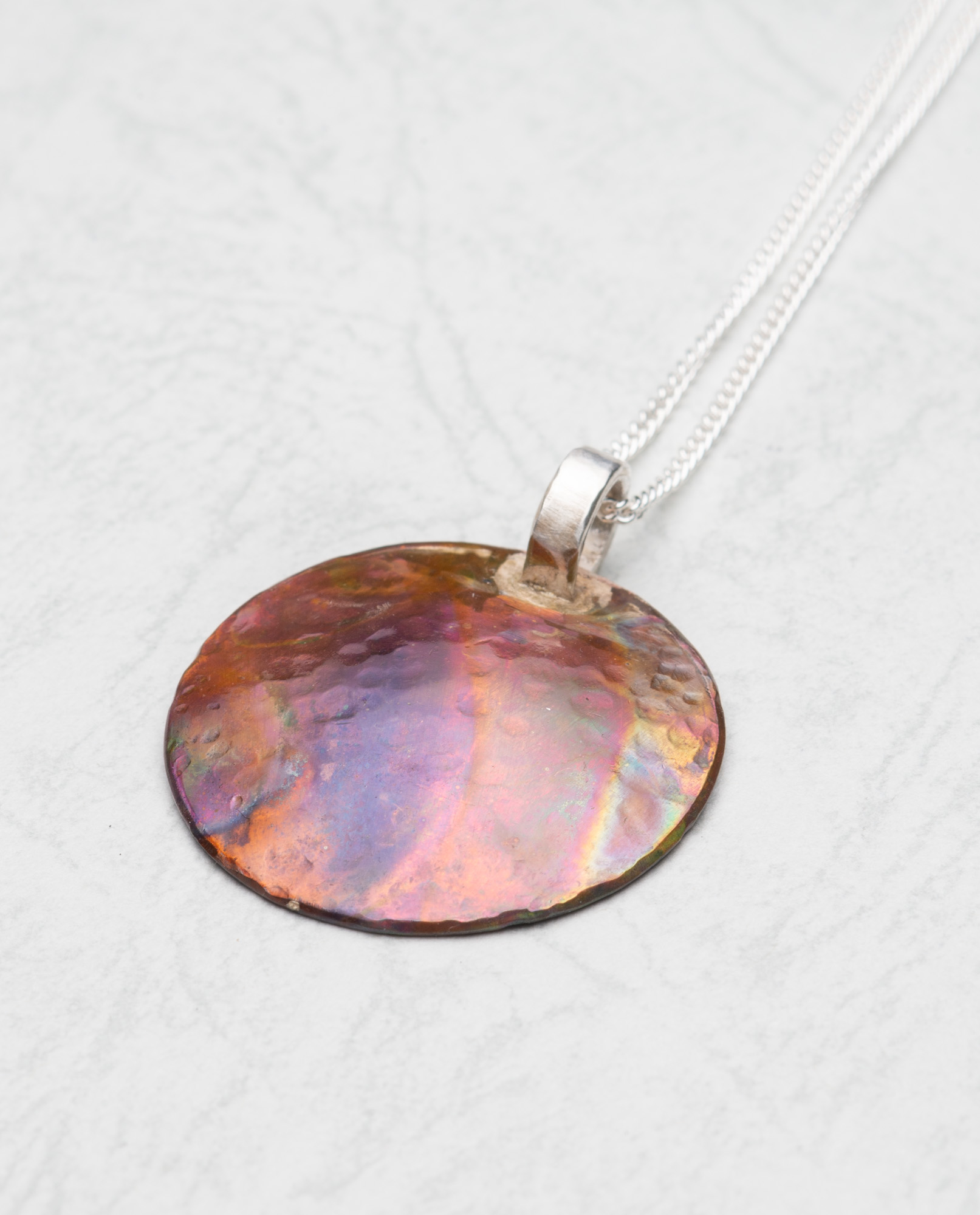 Copper flame painted disc 30mm with sterling silver bail and chain