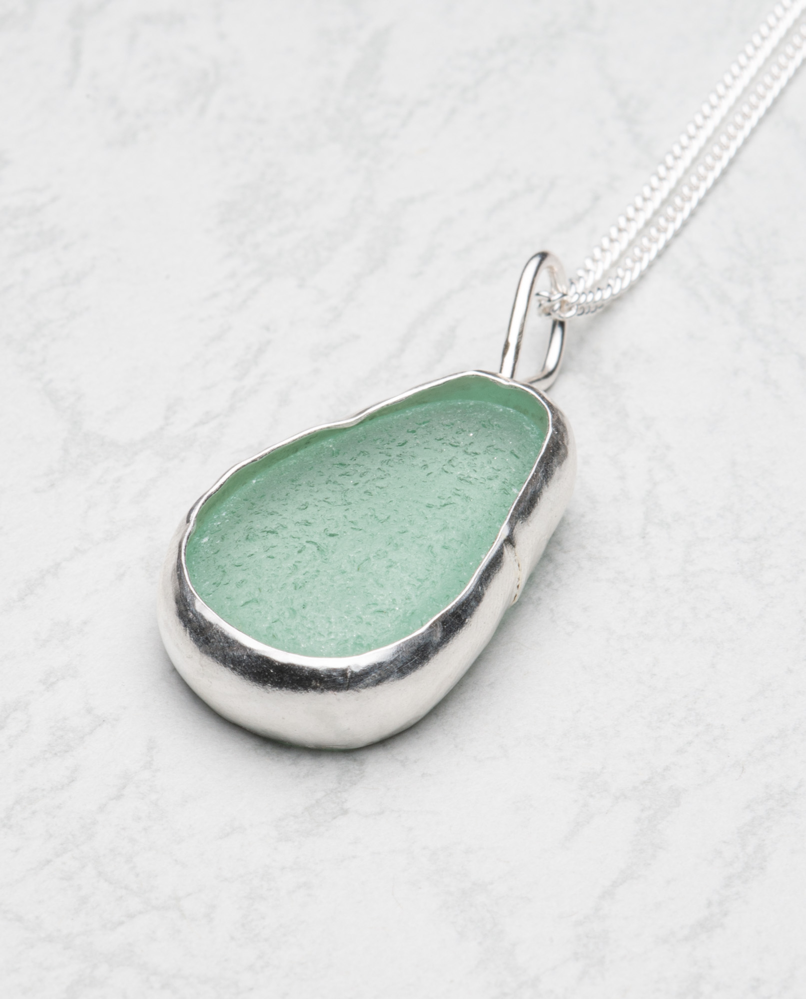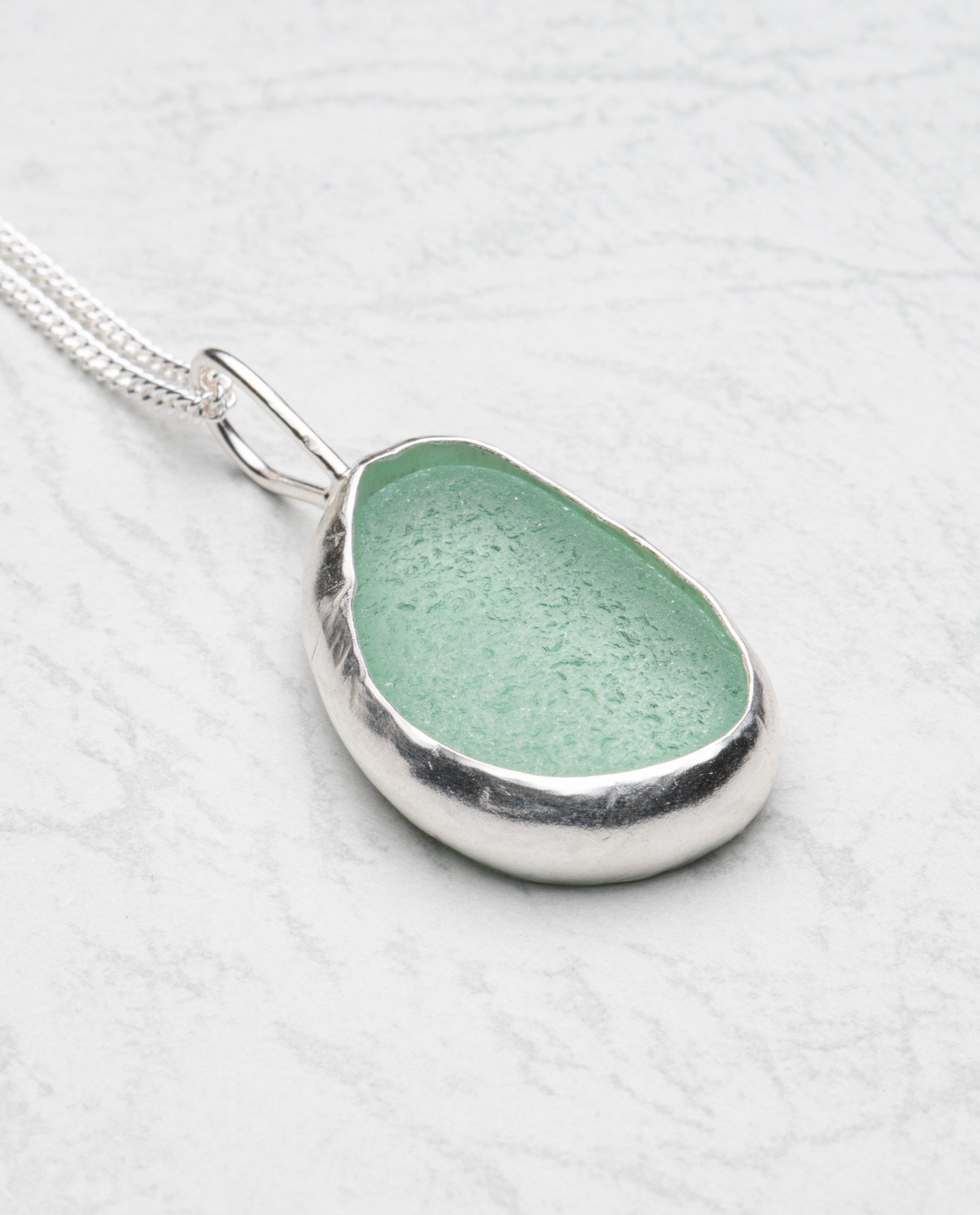 Large light green sea glass with fine silver bezel and sterling chain (optional) #395