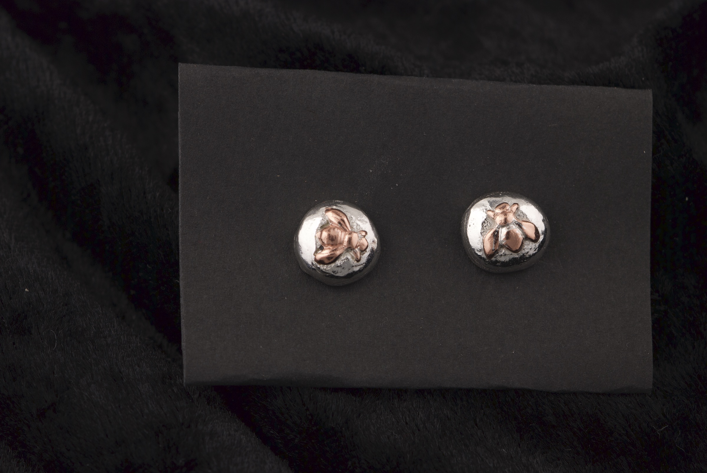 Melted Sterling Silver Post Earrings – ‘Pebbles’ – Copper Bees