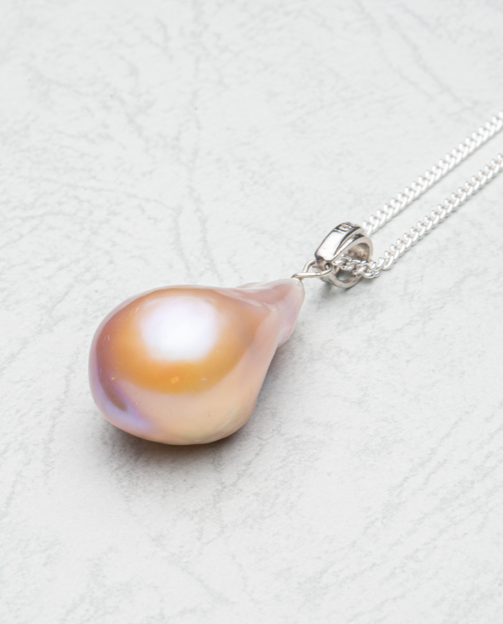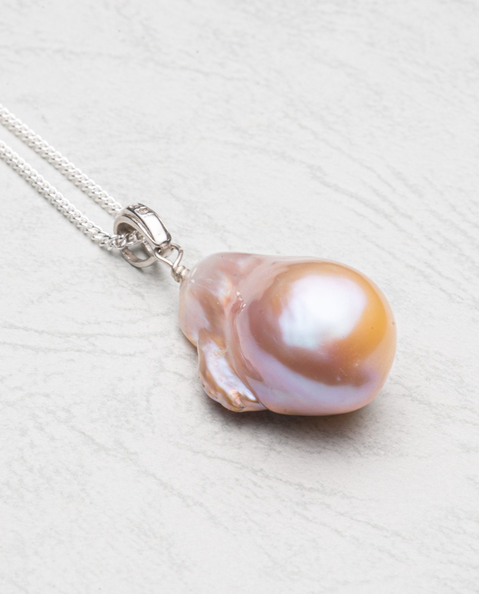 Beautilful light natural pink flameball baroque pearl (20mm) with sterling silver bail and chain