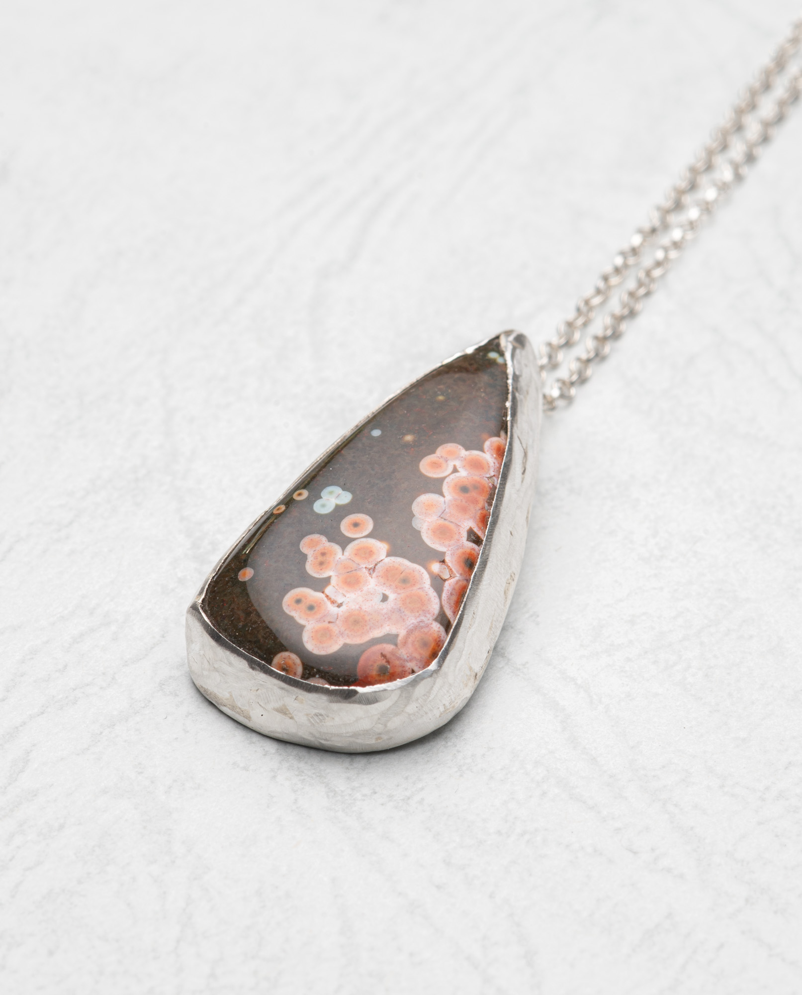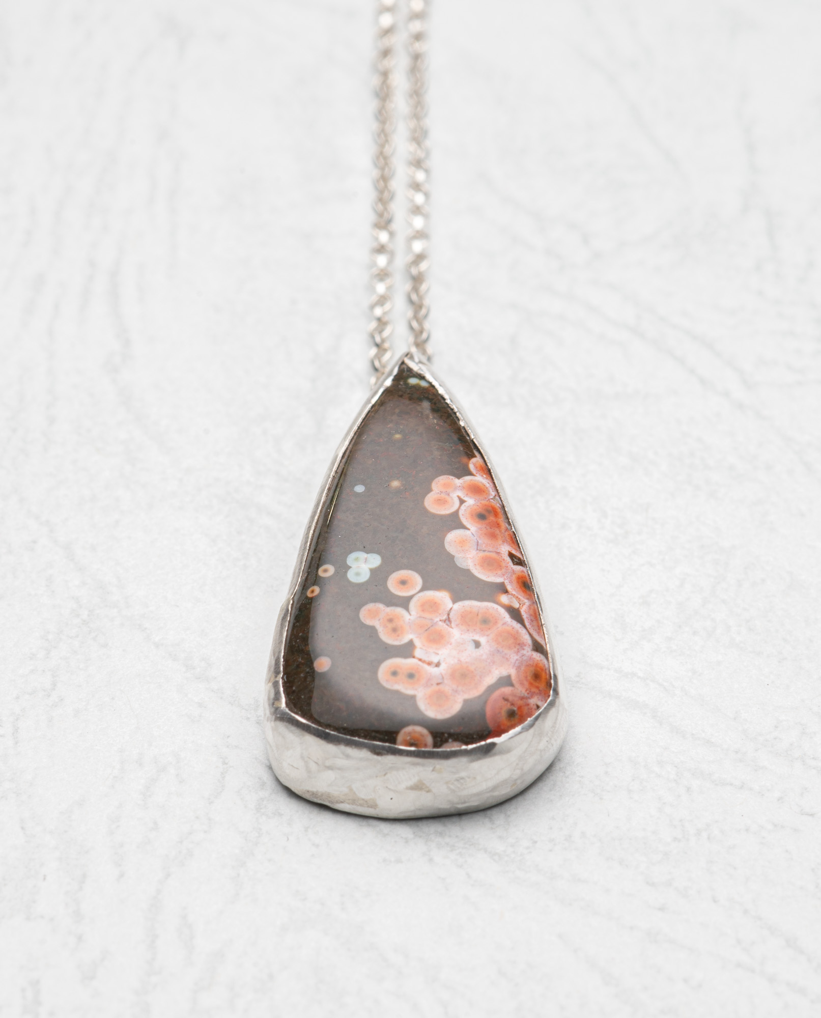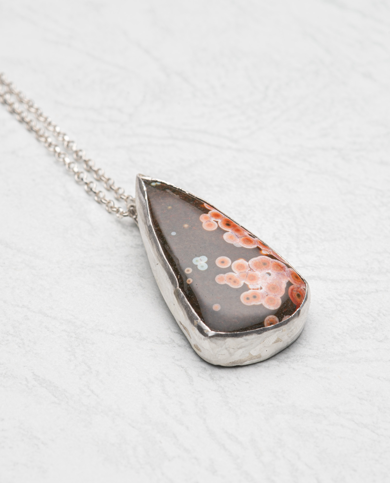 sterling silver bezel sea sediment jasper (31mm x 18mm) with sterling chain