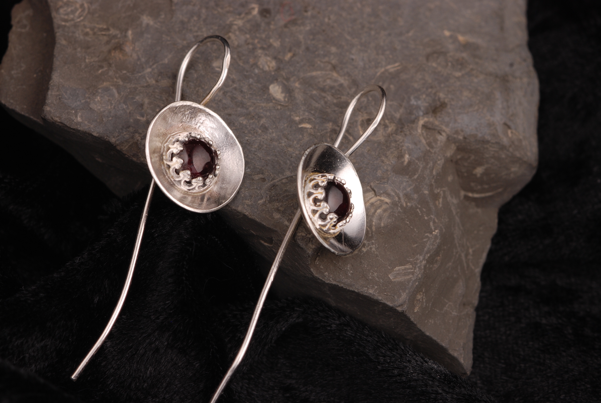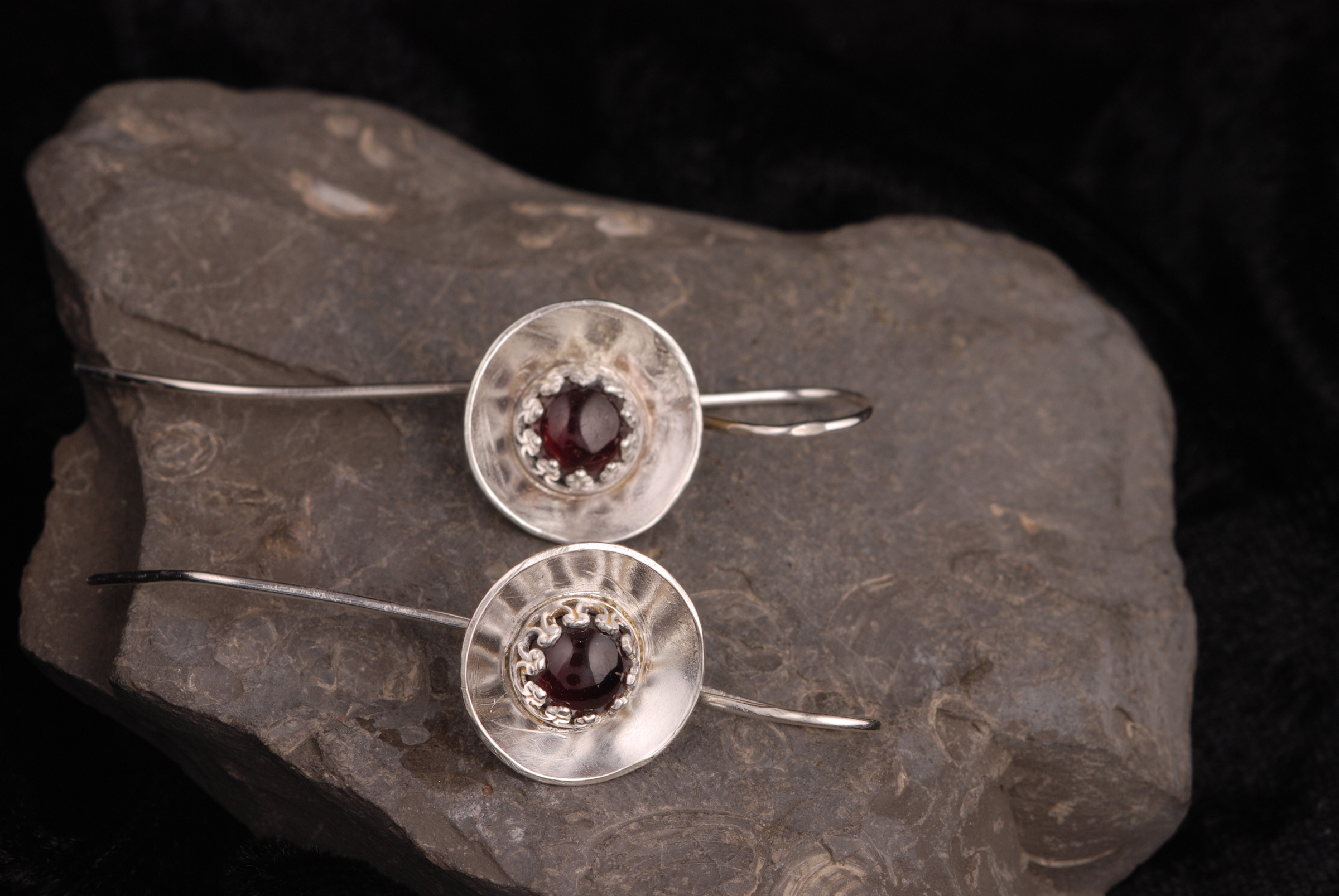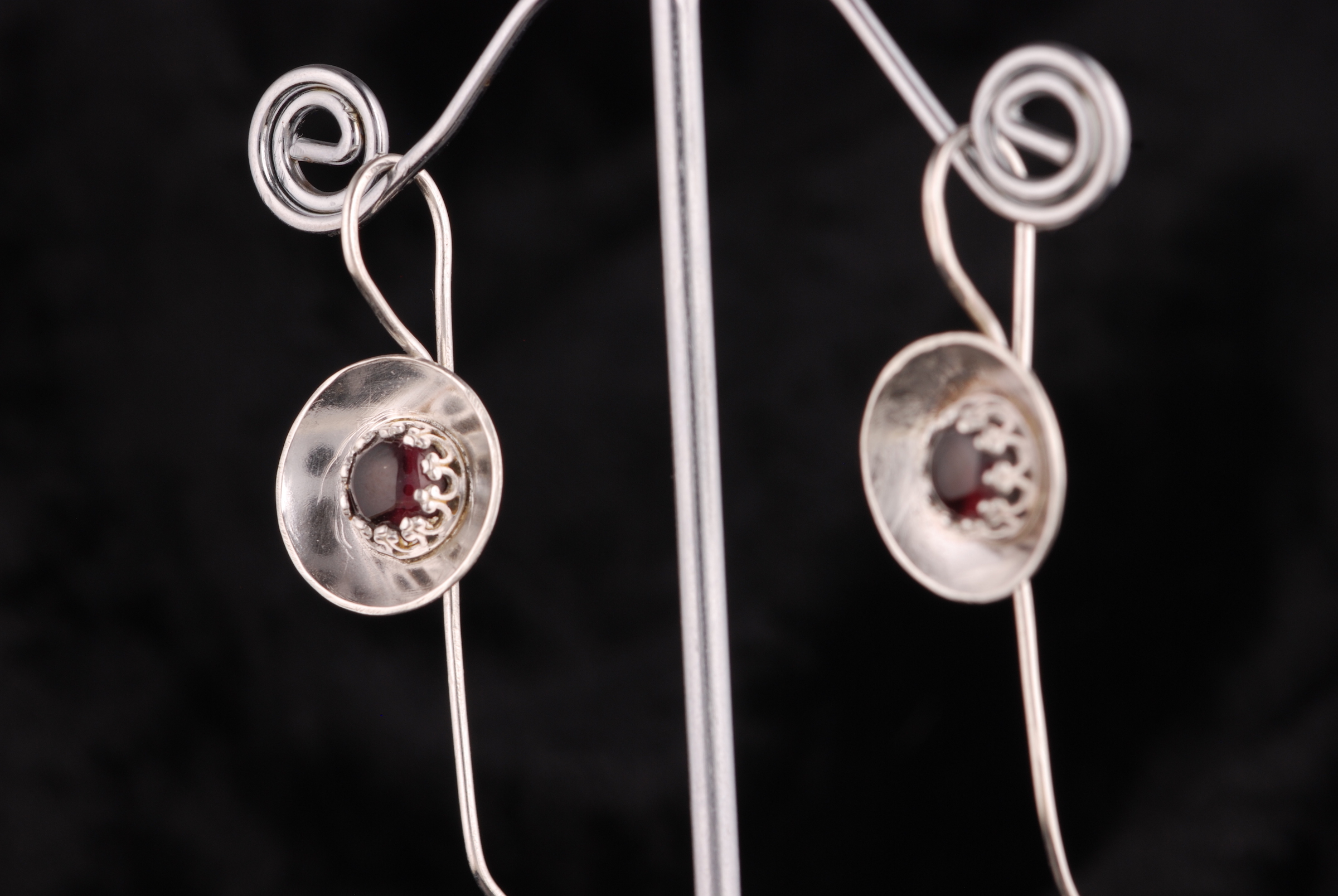 Sterling Silver Cup Bezel Earrings – Garnet