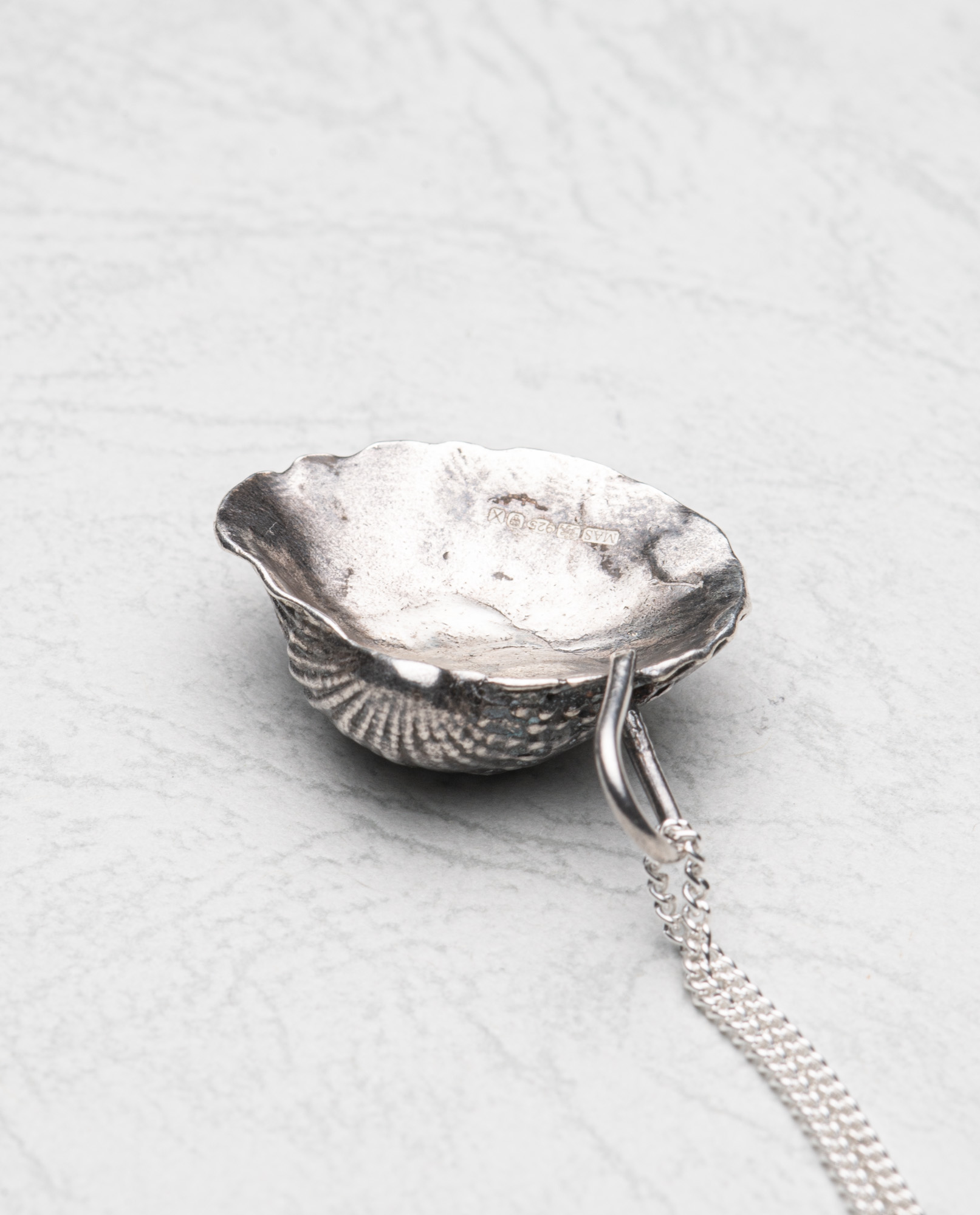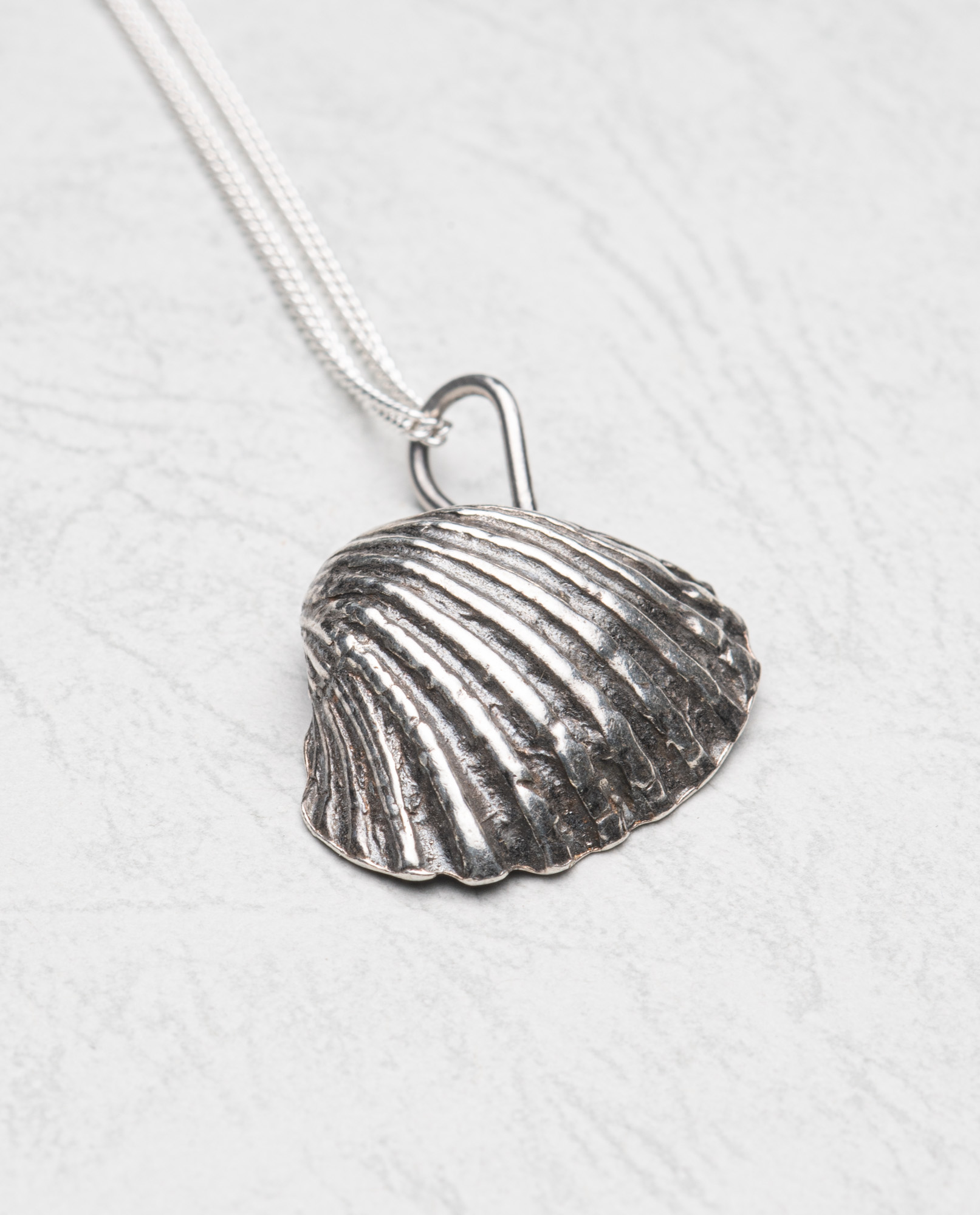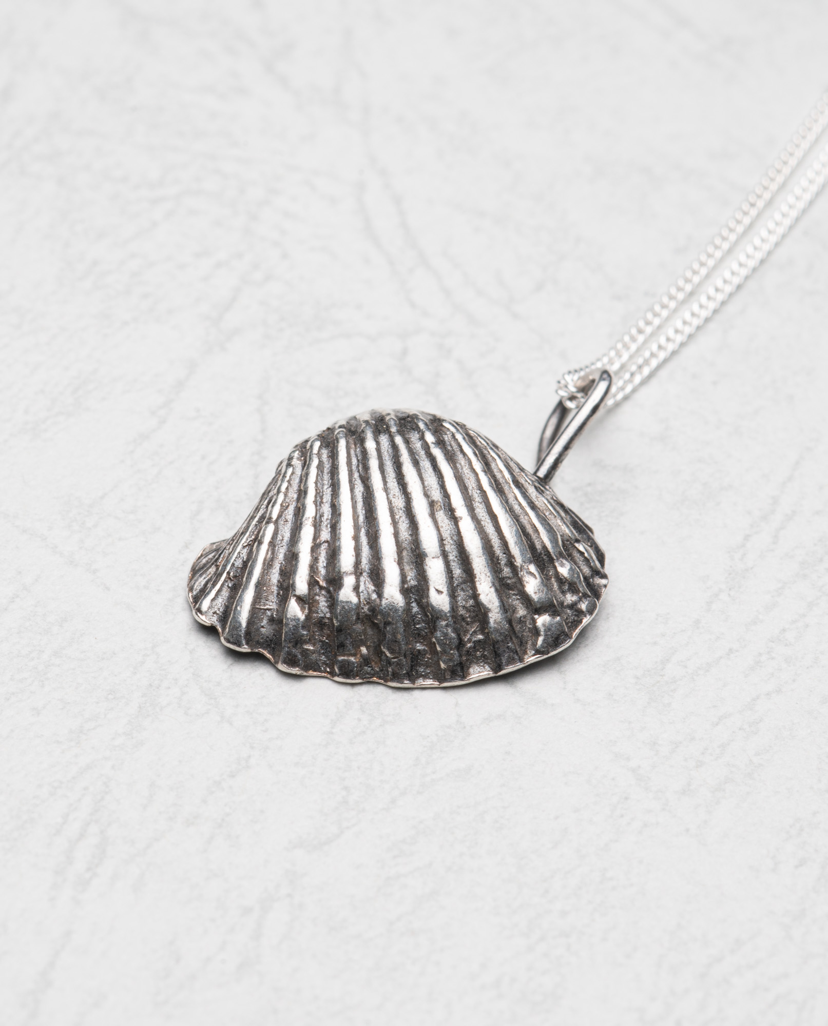 Darkened shell cast in sterling silver (10g) hallmarked with sterling silver chain.