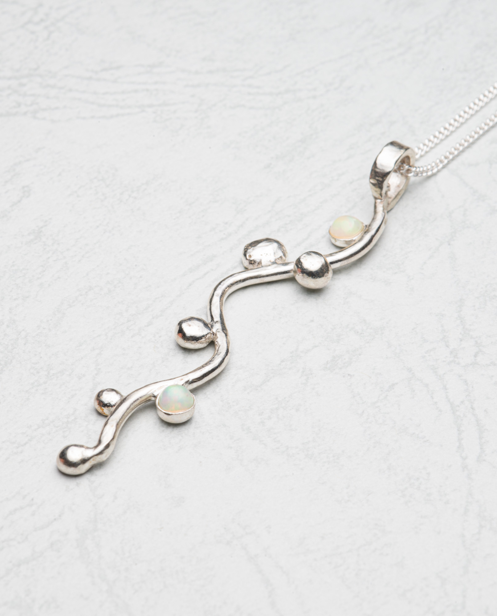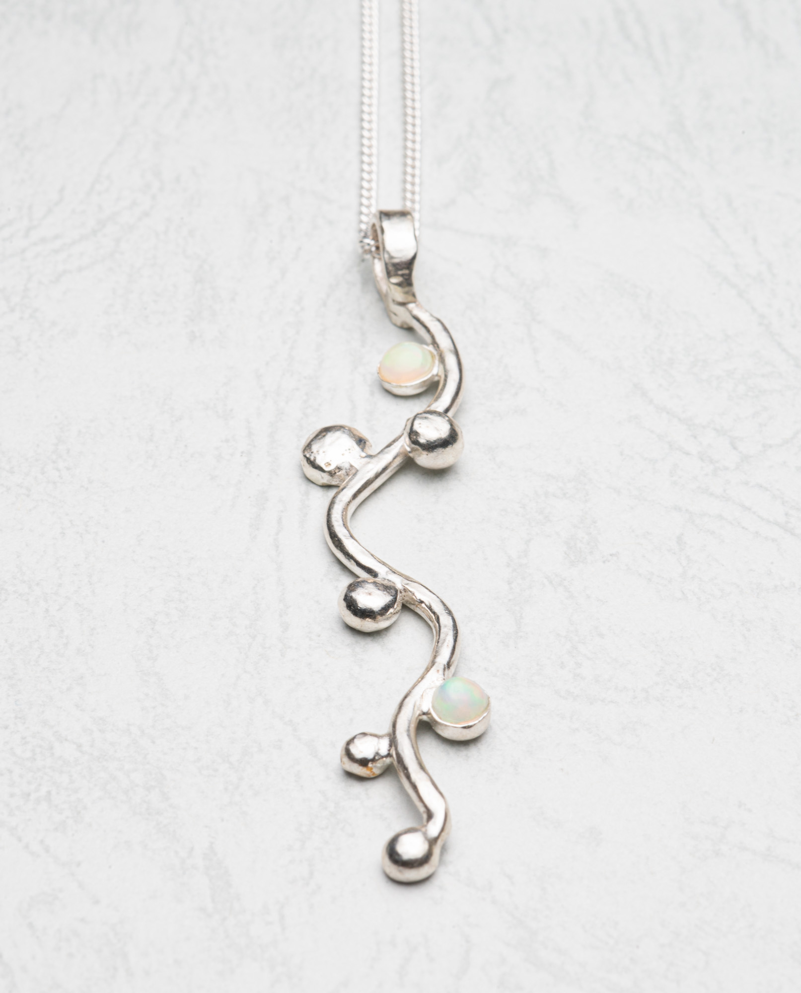 Sterling silver long vine 5g with 2 etheopian opals and sterling chain