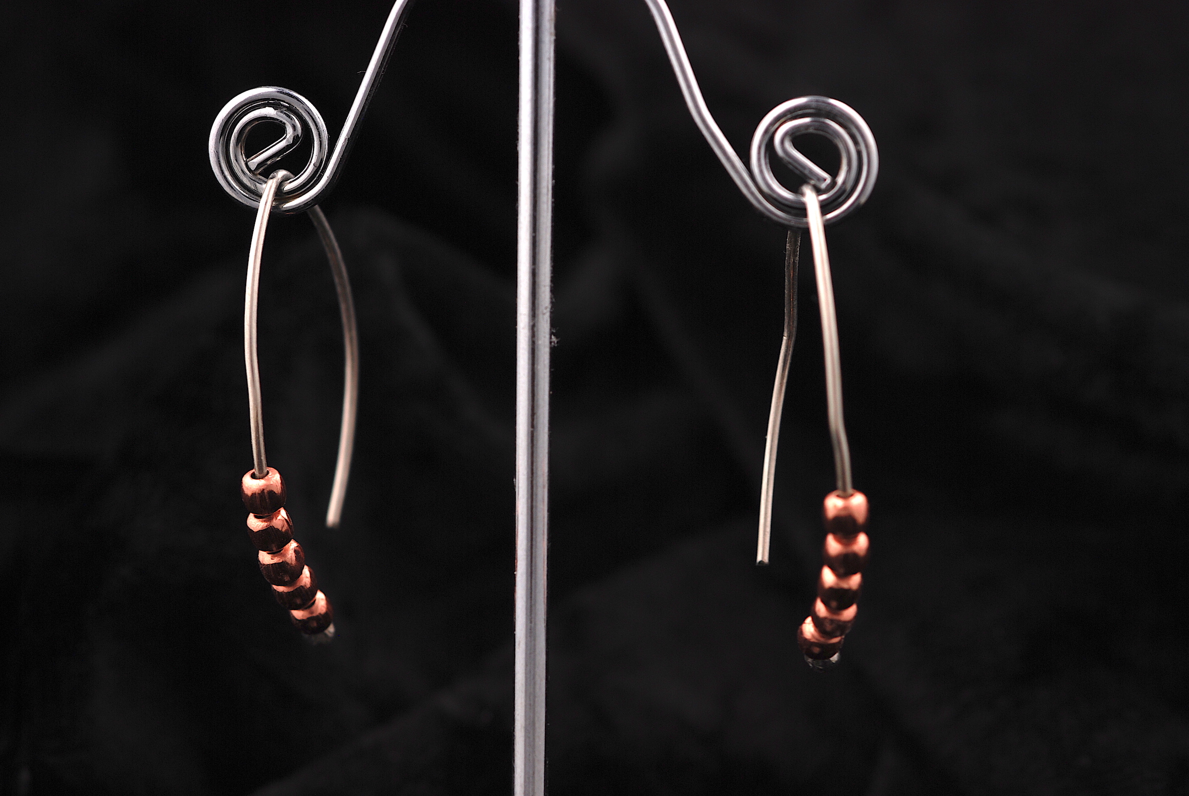 Sterling Silver Marquise Earrings – Copper Beads .9mm Sterling Silver Wire for strength