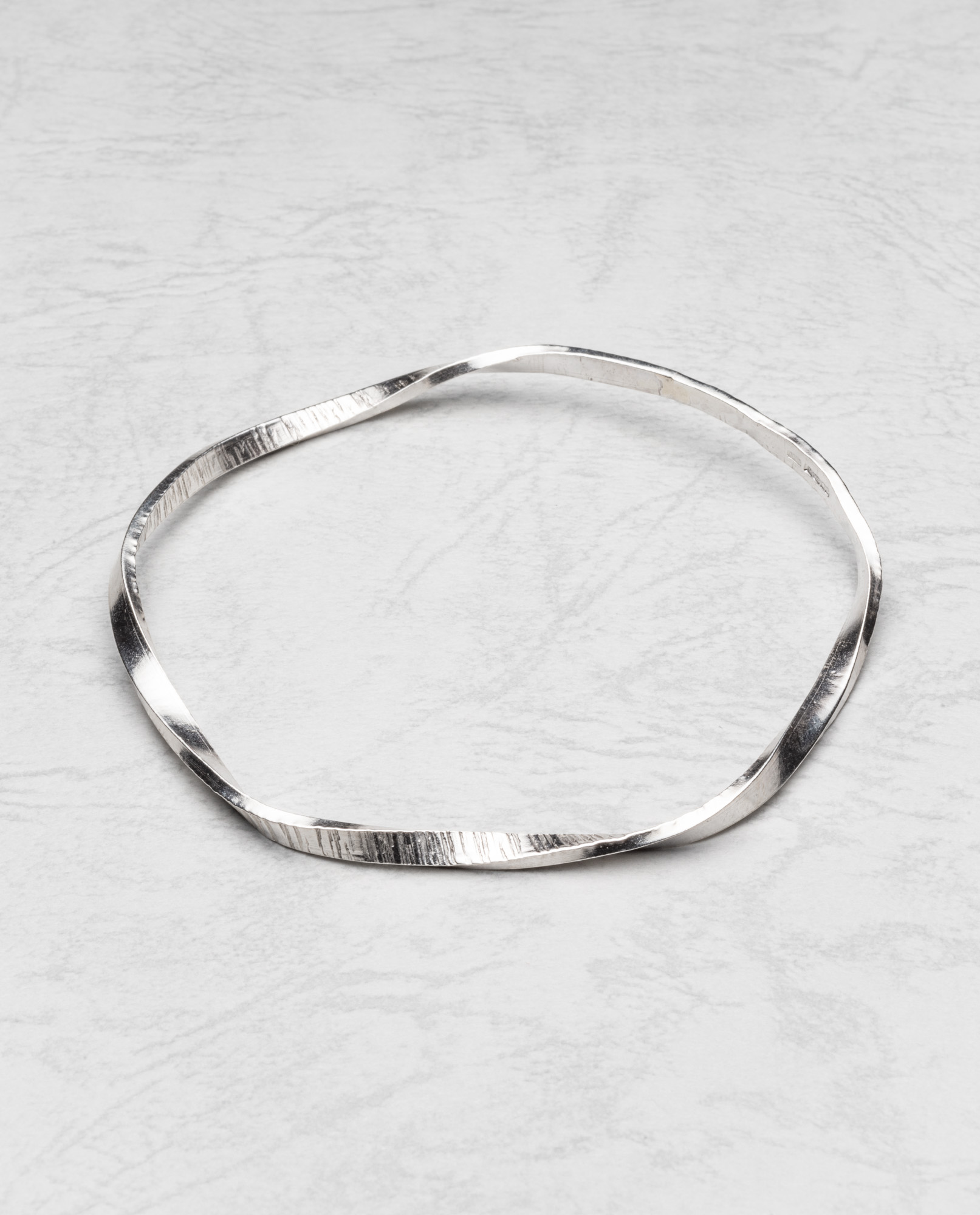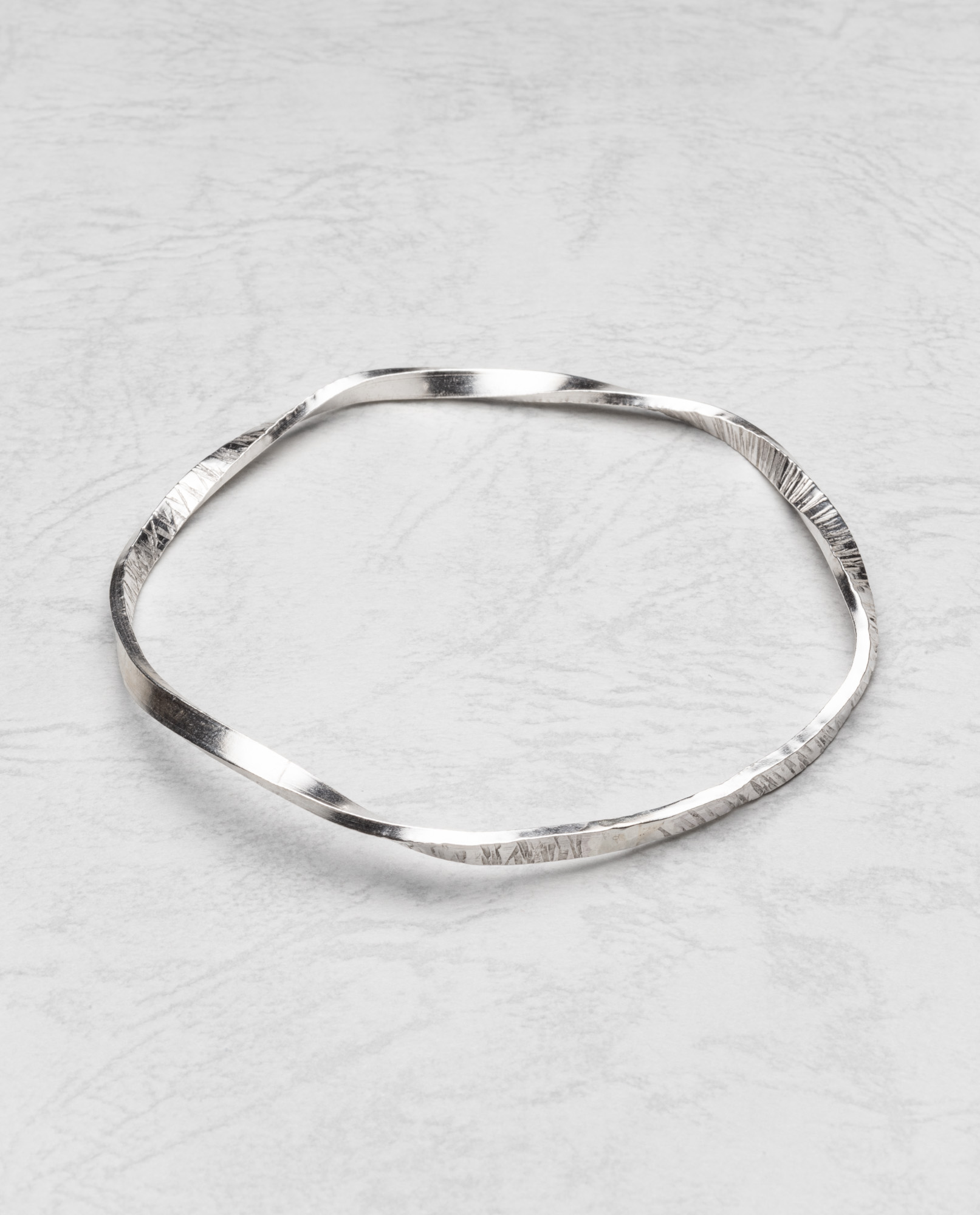 Sterling Silver Bangle – Ribbon – Bark Texture – 70mm 11gm