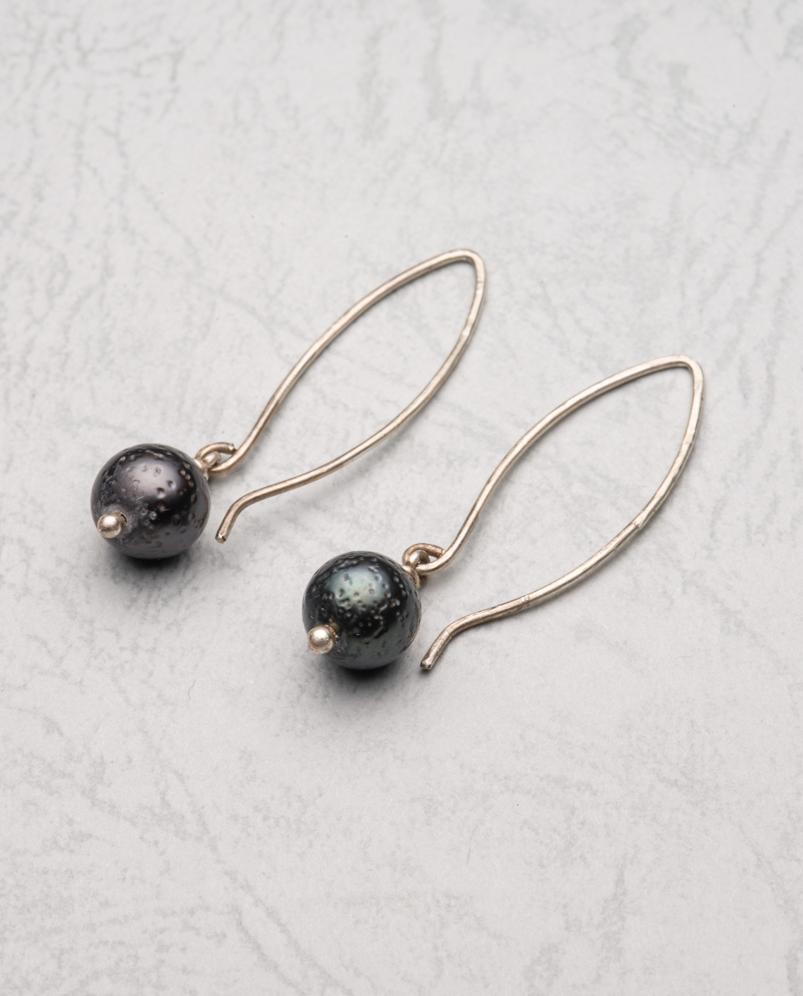 Sterling silver marquise Tahitian pearl 9mm earrings 32mm drop